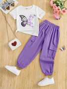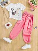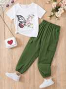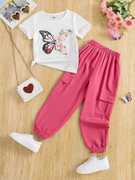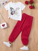 Thanks to its striking butterfly and floral pattern, the T-shirt from this set brings a lively and fresh feel to your little girl's wardrobe. The beautiful graphic creates a charming, playful look she will adore. Paired with bright, contrasting joggers, this set achieves a blend of style and everyday ease, making it a go-to outfit for any casual occasion.