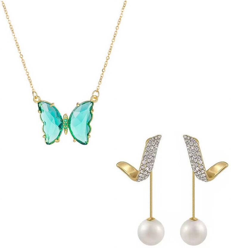 AVR JEWELS Fashion Blue Crystal Butterfly Necklace and.The Fashion Earring Set Combines Most Of Stylish Tassel Earrings, Acrylic Earrings, Alloy Earrings, Pearl Earrings and Stud Earrings, With Different Shapes and Styles, Which Will Make You Stand Out