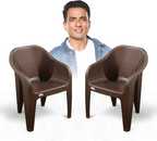 AVRO furniture 9100 MATT and GLOSS Plastic Chairs for Home, Office, Living Room and Garden Plastic Outdoor Chair (Brown, Set of 2, Pre-assembled)