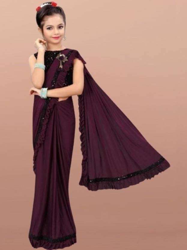 BABY GIRL SAREE, SAREE WITH FLORAL BROOCH, SCHOOL SAREE, WEDDING WEAR GIRL SAREE, PARTY WEAR KIDS SARI