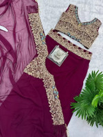 Crafted from luxurious georgette, this outfit combines elegance with comfort. Georgette is known for its lightweight and breathable qualities, making it ideal for long events and celebrations. The fabric drapes beautifully, enhancing the flow of the lehenga and the grace of the dupatta. Its slightly textured surface adds a subtle depth to the outfit, creating a sophisticated look without compromising on comfort.