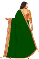 AVSAR TRENDZ Temple Border Bollywood Tussar Silk Saree (Green)