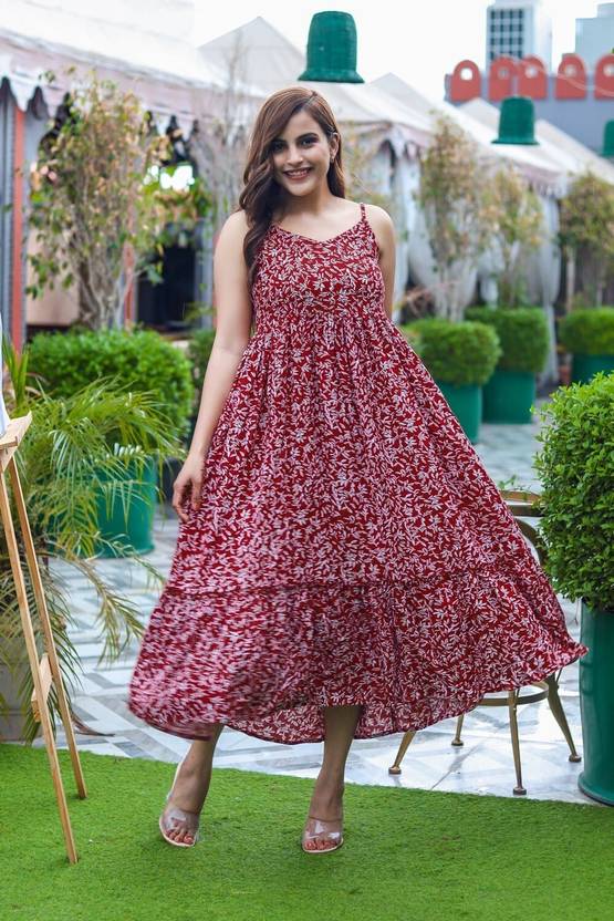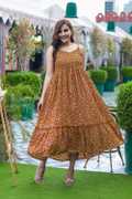 Printed Full Flared Classy Glamorous Women Dress with Flared frilly look