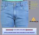Presenting the Stylish Comfort Fit Light Blue Sliky Denim Jeans For Men by Awack. These five pockets jeans are designed as per the latest trends to keep you in sync with high fashion. The Lycra in the fabric just fits this pant perfectly on your legs. These jeans provide you a touch of fashion alongwith the comfort of wearing which always ensures you to be in high esteem.
