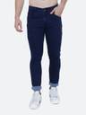 Dark Denim Blue Color Washed Jeans Pant For Men, Vintage Mid Rise 5 Pockets and Comfort Fit, Medium Weight Cotton Blend Fabric with Lycra. Stretchable Jeans Pant, Zip fly with button closure & Brand label at the back. 2 Patch Pockets at Back, 1 Coin Pocket at Front, 2 Curved Pockets at Front, Select the Size of the Jeans as per your Mid Waist Size.