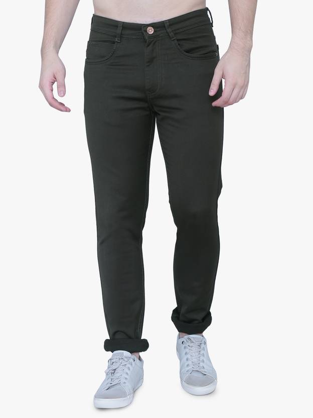 Timeless Elegance: Awack's Olive Green Colored Denim Jeans exude timeless style and sophistication, suitable for both casual and semi-formal occasions., Pure Cotton Comfort: Crafted from pure cotton, these jeans offer exceptional comfort and durability, making them perfect for all-day wear., Heavy-Weight Durability: The heavy-weight denim fabric ensures longevity and provides a structured, premium look., Functional Design: Featuring five practical pockets, including a coin pocket and classic back pockets, these jeans offer convenient storage options for your essentials., Versatile Mid-Rise Fit: Designed with a mid-rise and regular fit, these jeans are flattering for most body types and pair effortlessly with a wide range of tops and footwear, making them a versatile addition to your wardrobe.