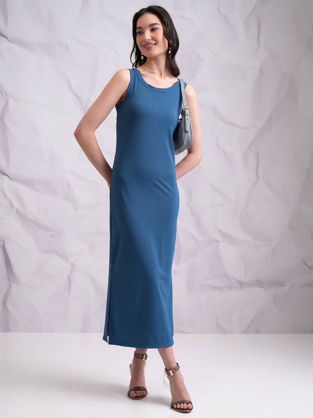Tokyo Talkies Women Round Neck Sleeveless Dress Blue