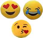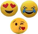 Awesome Look Cotton Cushion Pack of 3 Smiley Emoji Pillow (Yellow)