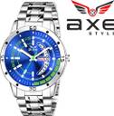 AXE Style Presents a New & Model And Fashionable Day and Date Blue Watch And This Watch Especially Ready For Handsome Boy's And Men's. If you're looking for a chronometer that has a simplistic yet unique design then you should settle for the AXE Style Collection Analogue Blue Dial Men'S Watch. This is a really beautiful dress watch with a classic appeal and just enough complication to catch the eye and entice the enthusiast. These watches are elegant and especially designed for a handsome Man's who desire for a royal and luxurious look..Making it a party accessory for you. This watch has many key features like round Blue color dial & Silver Chain & steel back cover. Comes in a AXE Style Royal watch box.High Quality Stainless Steel Wrist Band