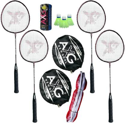 AXG NEW GOAL Scratch Resistant A-2000 Racquets set of 4 with Cover, 3 Plastic Shuttle and Net Badminton Kit