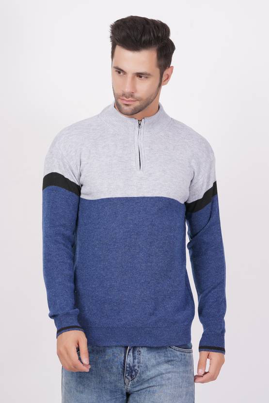 AXOLOTL Colorblock, Striped Round Neck Casual Men Blue Sweater