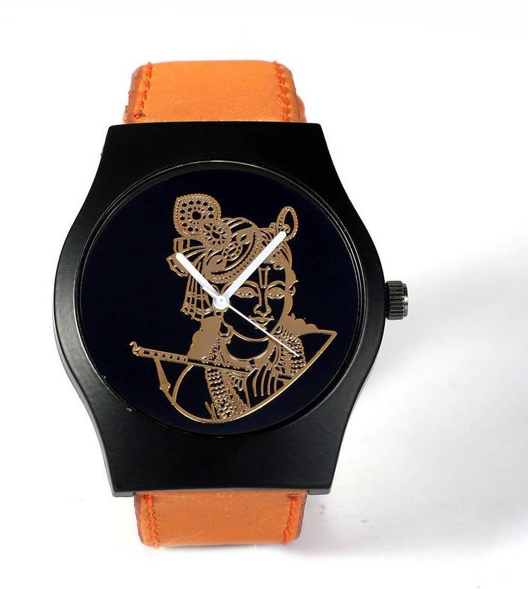 Lord Shree Krishna Casual Analog White Metal Dial wrist Watch Men's with 24k Gold Plated dial Pattern
