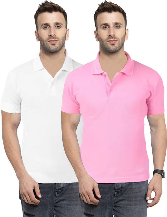 Axter Pack of 2 Men Solid Polo Neck Cotton Blend White, Pink T-Shirt