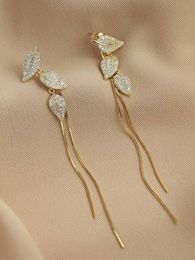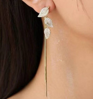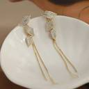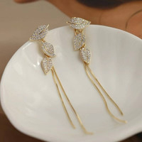 Aylana Golden Leaves with Long Chain Detachable Korean Earrings Zircon Alloy Tassel Earring