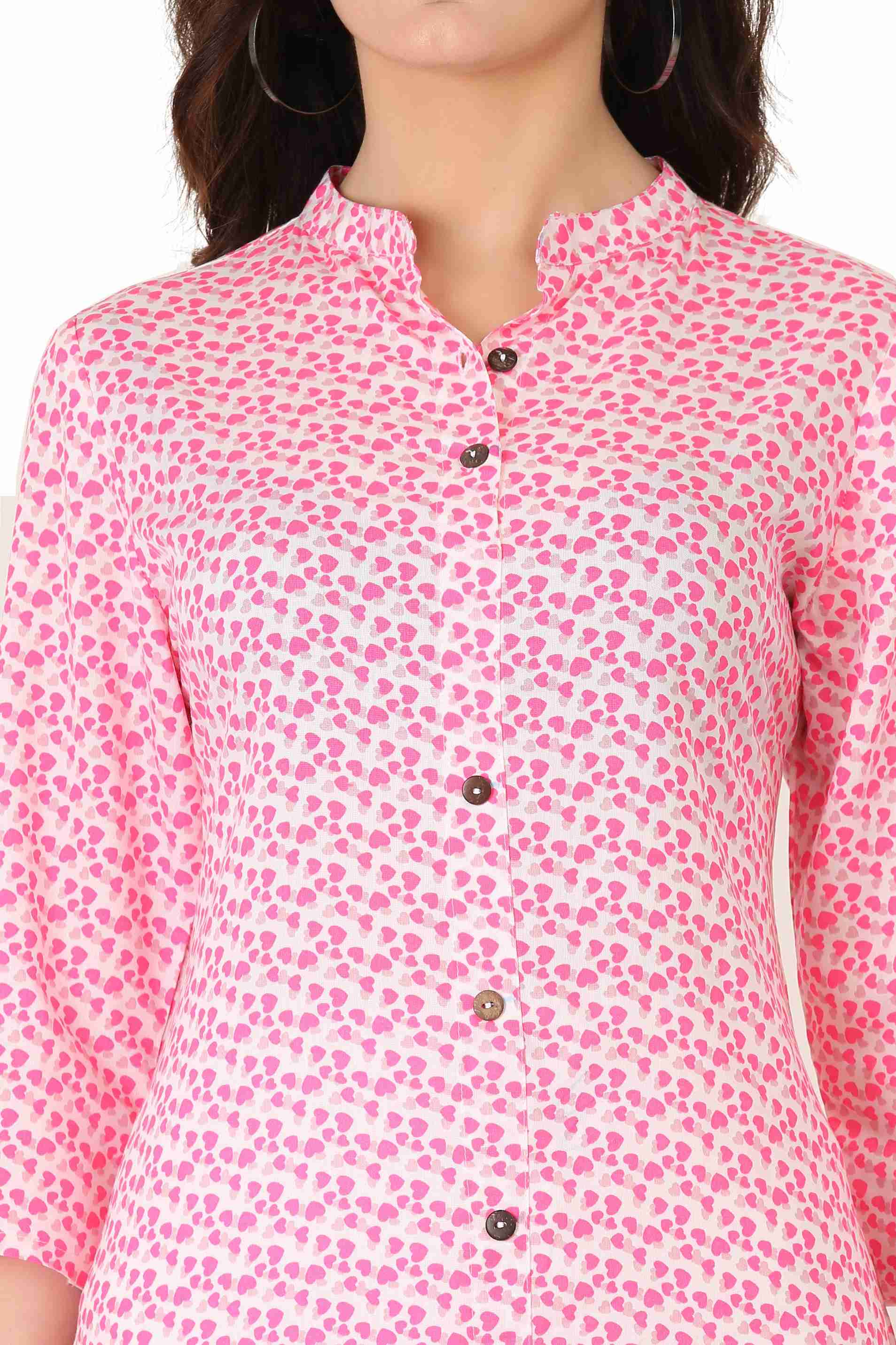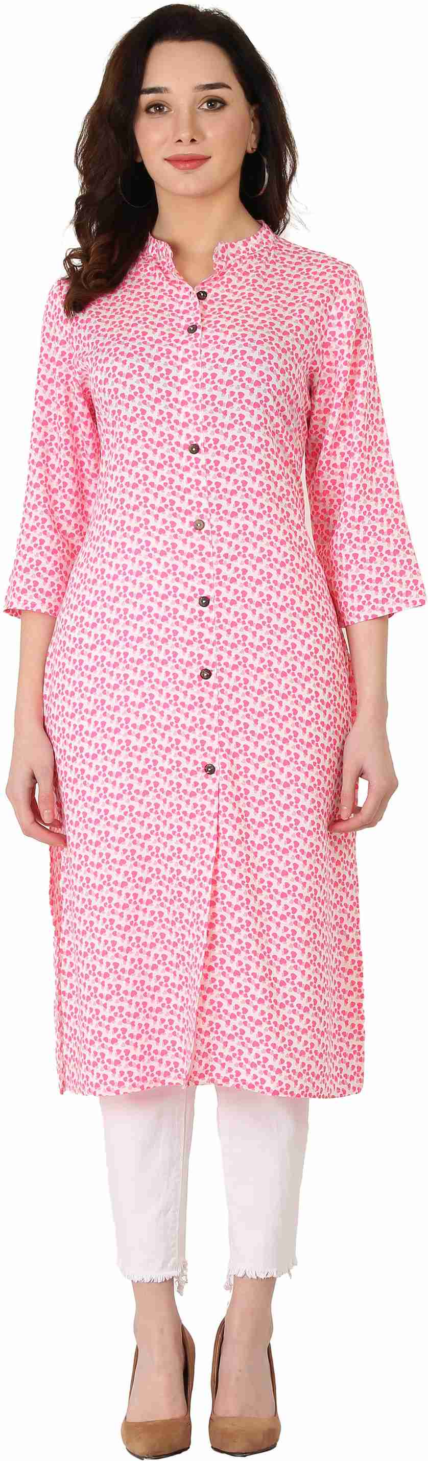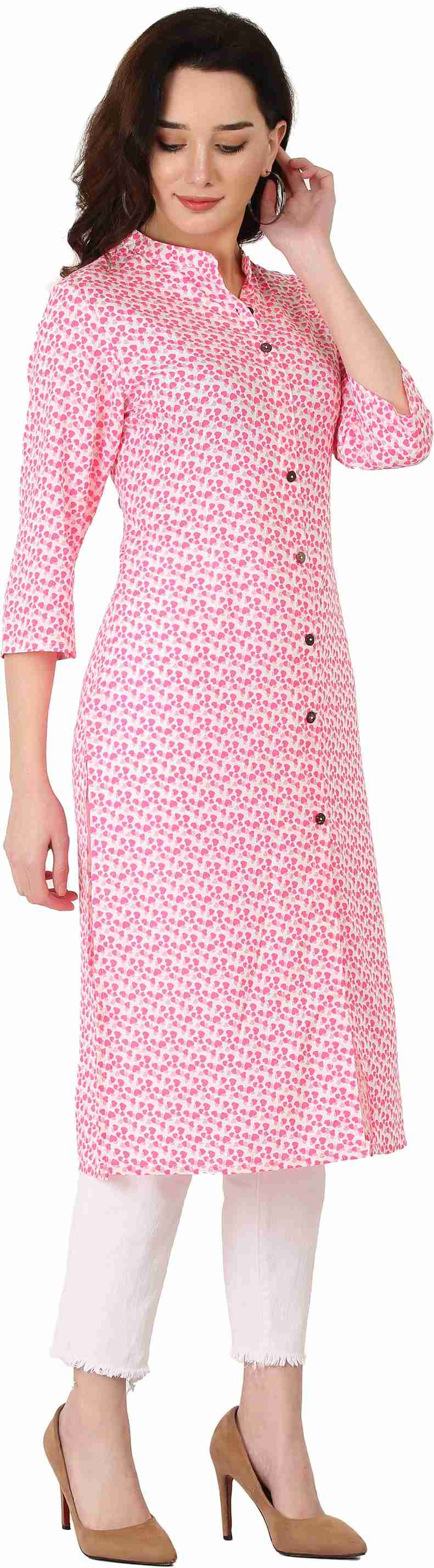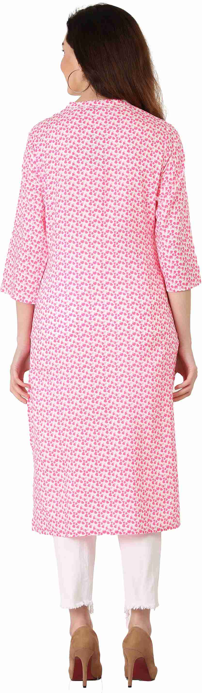 Women Printed Cotton Blend Straight Kurta (Pink)