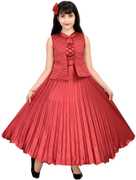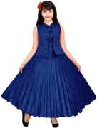 AYUB FASHION Girls Maxi/Full Length Party Dress (Dark Blue, Sleeveless)