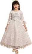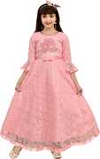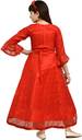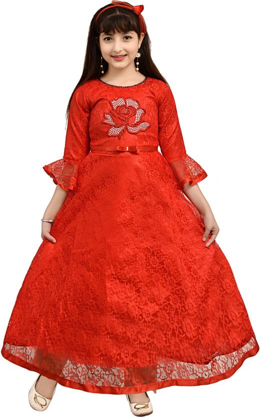 AYUB FASHION Girls Maxi/Full Length Party Dress (Red, 3/4 Sleeve)