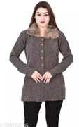 AYUB FASHION Self Design Round Neck Casual Women Brown Sweater