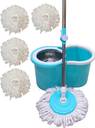 Ayush Premium Steel Basket Self Spin with Rotating Head with 4 extra refill Mop Set (Green, White)