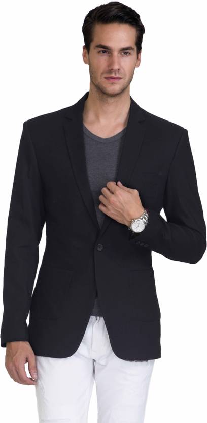 Men Solid Single Breasted Casual Blazer (Black)