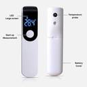 The B-Arm Infrared Laser Thermometer (White) is a smart, safe, and efficient device that measures body and object temperature from a distance using advanced infrared sensor technology without contact. This clinical thermometer has a built-in IR thermometer sensor that delivers fast and accurate readings in just 1 second from a safe distance of 3–5 cm, using a simple single-button for hassle-free operation. The digital temperature meter features Body Mode for accurate body temperature measurement and Object Mode for checking surface temperature. The IR laser thermometer - battery operated (not included in package) supports dual temperature units, allowing measurements in either Celsius or Fahrenheit based on user preference. The infrared thermometer features a large LED display. In Body Mode, the infrared temperature thermometer gives color and sound alerts: green with a short beep for normal, yellow with a slightly longer beep for mild elevation, and red with a long beep for fever. This infrared temperature detector is ideal for use in hospitals, clinics, homes, and public spaces for quick fever temperature checks and is especially helpful in neonatal care, where it allows body temperature measurement without disturbing infants. Designed for non-contact use, this baby thermometer ensures accurate fever monitoring for babies, children, and adults without contact.