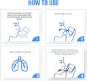 HOW TO USE: To use the mucus extractor, stay relaxed, hold it in one hand, and place the mouthpiece in your mouth, keep it parallel to the ground. Inhale slowly through your nose, hold for 1-2 seconds, then exhale slowly. Keep your cheek muscles firm by placing your other hand on your cheek and avoid bulging your cheeks to get the best results. The lung mucus cleaner should be used twice a day, with each session lasting 15 minutes. Users are encouraged to start with the 15mm ball and gradually increase resistance. Kids are advised to use 15 mm ball. The mucus clearing device must be cleaned after each session. Clean the mucus suction machine using mild soap water or detergent, but avoid using chlorine water, bleach, or any chlorine-containing products for effective use.