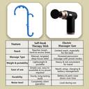 This body massager is also an easy-to-use therapy tool to promote blood circulation and enhance muscle recovery after exercise. Even the hard to reach areas between the shoulder blades and mid-back are easily accessible with this self massage hook therapy tool. This pain relief device cannot be removed once attached, which prevents the loosening of parts and improving sturdiness. This deep tissue massage tool is also used to treat various conditions like arthritis, migraine, myofascial pain syndrome and fibromyalgia. The muscle massage tool offers targeted pain relief for neck pain, cervical pain, joint pain, knee pain, shoulder pain, torso pain and leg pain, making it an essential tool for reducing discomfort throughout the body. This massage therapy tool is easy to use for massaging hard-to-reach areas without needing power. Unlike electric massager gun or massage machine, which are bulkier, need charging, and usually more expensive. This trigger point back massager targets specific pressure points for improved mobility and stress relief, while the acupressure mat massager works on many points at once but isn’t as focused or precise as the self hook therapy stick. This self massager provides manual pressure to release muscle knots and muscle tightness without any electrical stimulation, while tens machine uses electrical pulses to stimulate muscles and provide pain relief. Unlike hot water bag or ice pack therapy that offer short-term surface relief, the self-hook therapy tool focuses specific areas with precise pressure for deeper, longer-lasting muscle pain relief and recovery.
