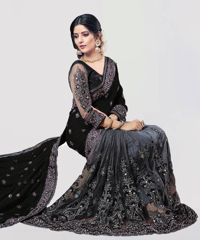 Day Festive, Embroidered, Embroidered Half N Half, Embroidered Net, Fancy Border, Festive Look, Heavy Designer Look, Occasional Sari/Party Sari, Zari border
