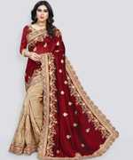 b bella creation Embroidered Bollywood Silk Blend, Art Silk Saree (Maroon, Cream)