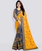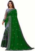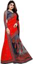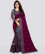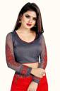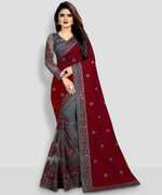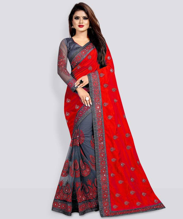 b bella creation Embroidered, Embellished Bollywood Net Saree (Red, Grey)