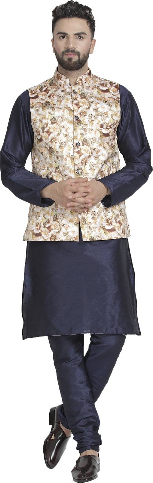 B BEN Men Pure Silk Kurta Pyjama Ethnic Jacket Set