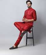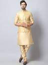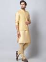 Adorn your look with this fashionable KURTA PYJAMA AND WAISTCOAT set from B BEN that will add a touch of sophistication and class to your ethnic look. Designed to perfection with a round collar for a dash of style and tailored from fine quality fabric. It is comfortable to wear and easy to maintain. It is a great addition to your wardrobe and will win you compliments from one and all.
