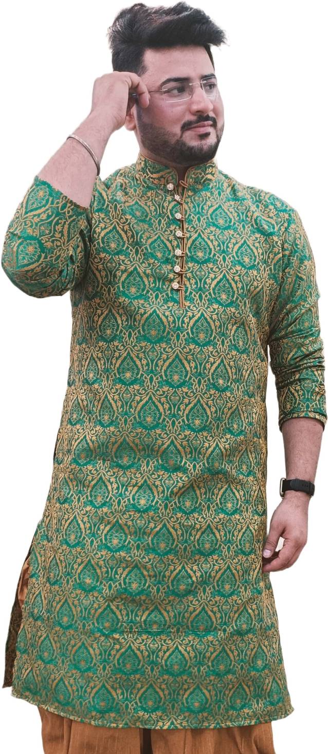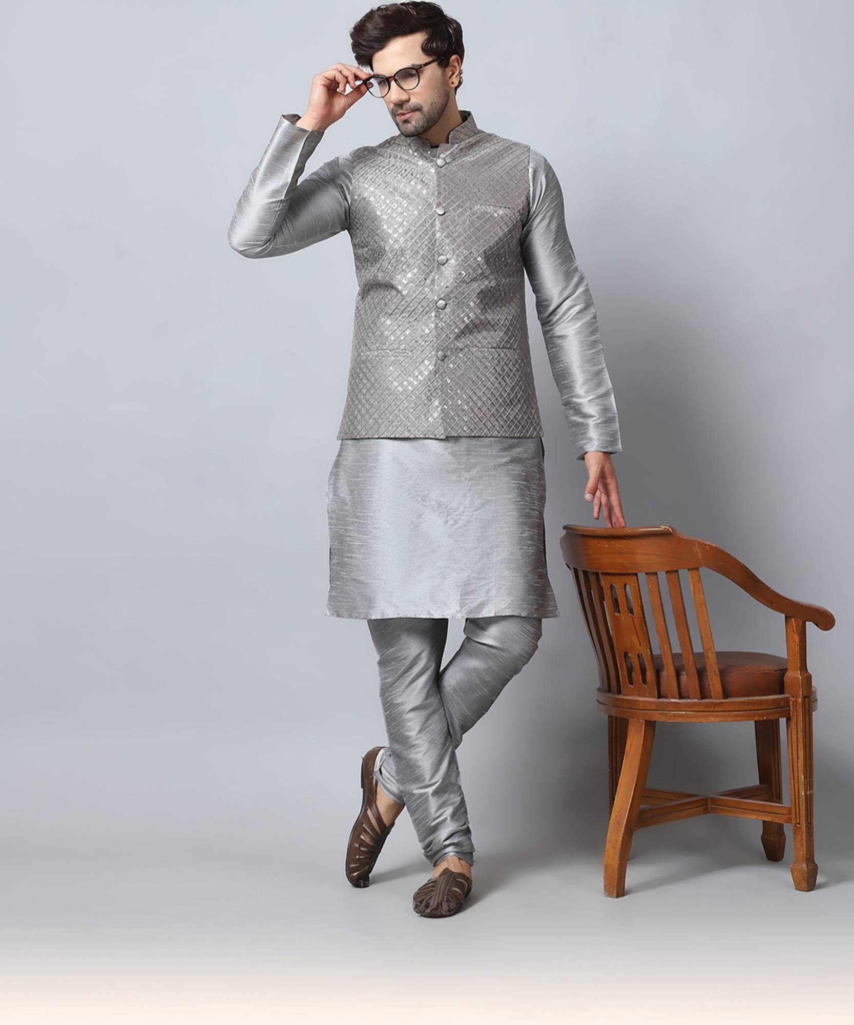 Adorn your look with this fashionable KURTA PYJAMA AND WAISTCOAT set from B BEN that will add a touch of sophistication and class to your ethnic look. Designed to perfection with a round collar for a dash of style and tailored from fine quality fabric. It is comfortable to wear and easy to maintain. It is a great addition to your wardrobe and will win you compliments from one and all.