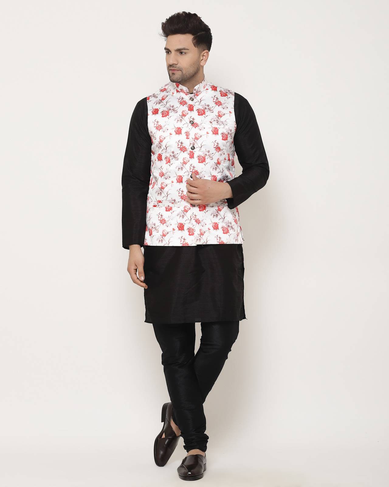 Adorn your look with this fashionable KURTA PYJAMA AND WAISTCOAT set from B BEN that will add a touch of sophistication and class to your ethnic look. Designed to perfection with a round collar for a dash of style and tailored from fine quality fabric. It is comfortable to wear and easy to maintain. It is a great addition to your wardrobe and will win you compliments from one and all.