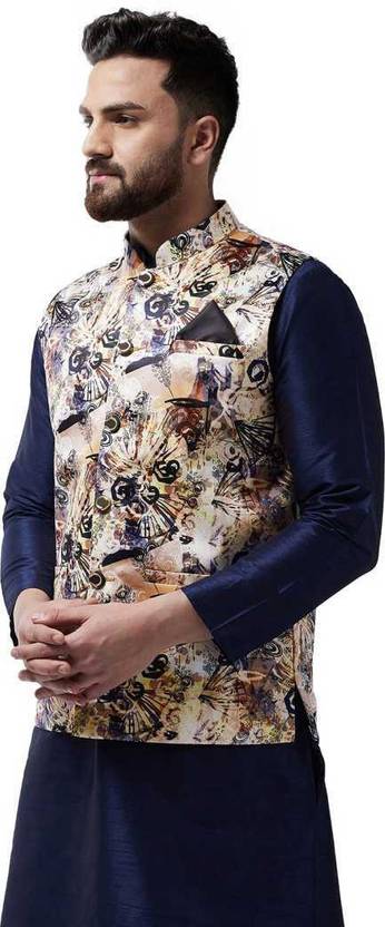 Adorn your look with this fashionable Men's Ethnic Waistcoat set from BEN COOPER that will add a touch of sophistication and class to your ethnic look. Designed to perfection with a round collar for a dash of style and tailored from fine quality fabric. It is comfortable to wear and easy to maintain. It is a great addition to your wardrobe and will win you compliments from one and all.