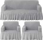 B BESTILO Polyester 3+1+1 Seater Sofa Plain Cover (Pack of 1 Grey)