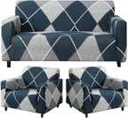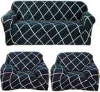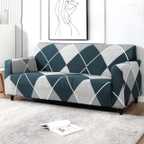 B BESTILO Polyester 4 Seater Sofa Checkered Cover (Pack of 1 BLU RHO)