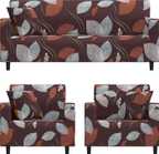 B BESTILO Polyester 3+1+1 Seater Sofa Checkered Cover (Pack of 3 floral)
