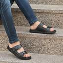Super stylish Sandal slides-slippers that can be worn around the house or with your favorite linens. They promise you day long support. The slides some with Velcro to adjust the width of your foot, a safe choice. Ample Arch Support- The Full length orthopedic inserts delivers the ideal balance of strength to improve stride efficiency. Arch Massaging and protecting-Arch support with raising edge assists natural curling of the feet with minimum pressure. Anti Sked Bottom surface- The outsoles with rubberized grip patterns assist in handling wet surfaces confidently.