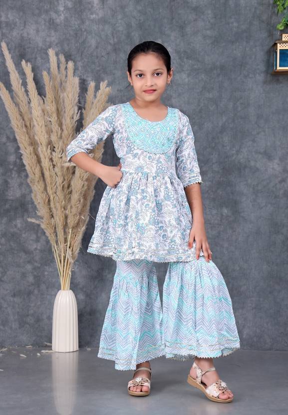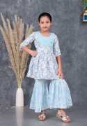 B.Tech Girls Wedding Angarkha and Sharara Set (Light Blue Pack of 1)