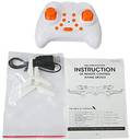 Box Contains: 1 Drone, 1 Transmitter, 1 Charging Cable, 2 Extra Wings, 1 Screw Driver and 1 User Manual