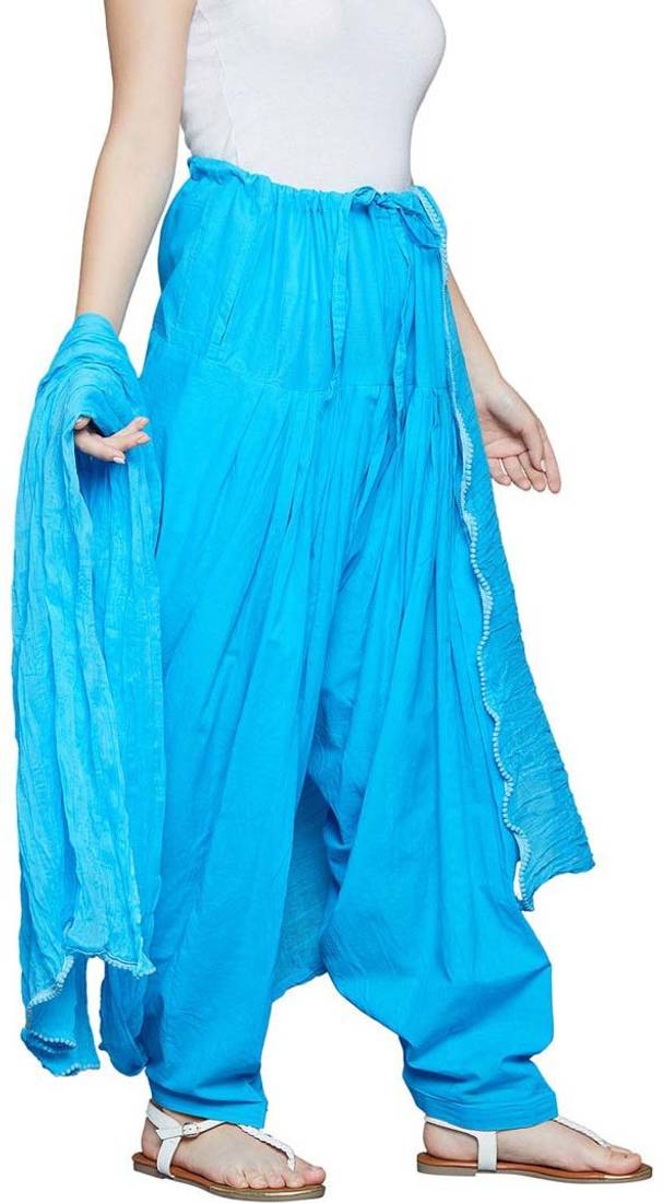 Its collection of the time-honoured flared Patiala in prints and colours that will turn heads and spark desire.Fabricated from the finest cotton and dyed in bright colours these patiyalas are comfy and breezy We’ve teamed them up wit h a matching dupattah with crushed effect for your perfect get-up. What ’s more is,these absolutely comfortable cotton Patialas come with a handy pocket provision, providing for your unspoken needs. These pants are also suitable for maternity wear as they are of free size and very comfortable.