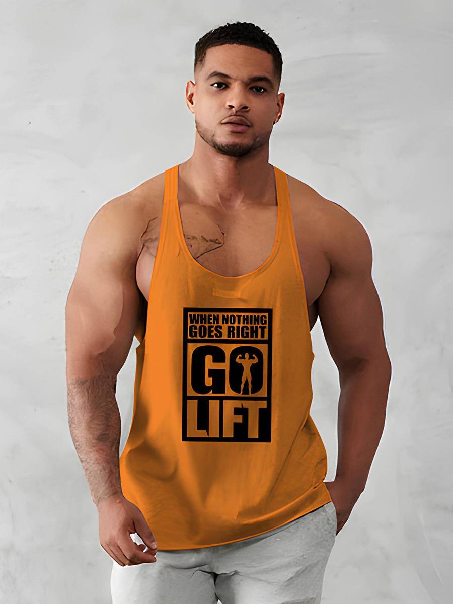 Gym Vest Polyester Printed Stylish Vest -When Nothing Goes Right Go Lift