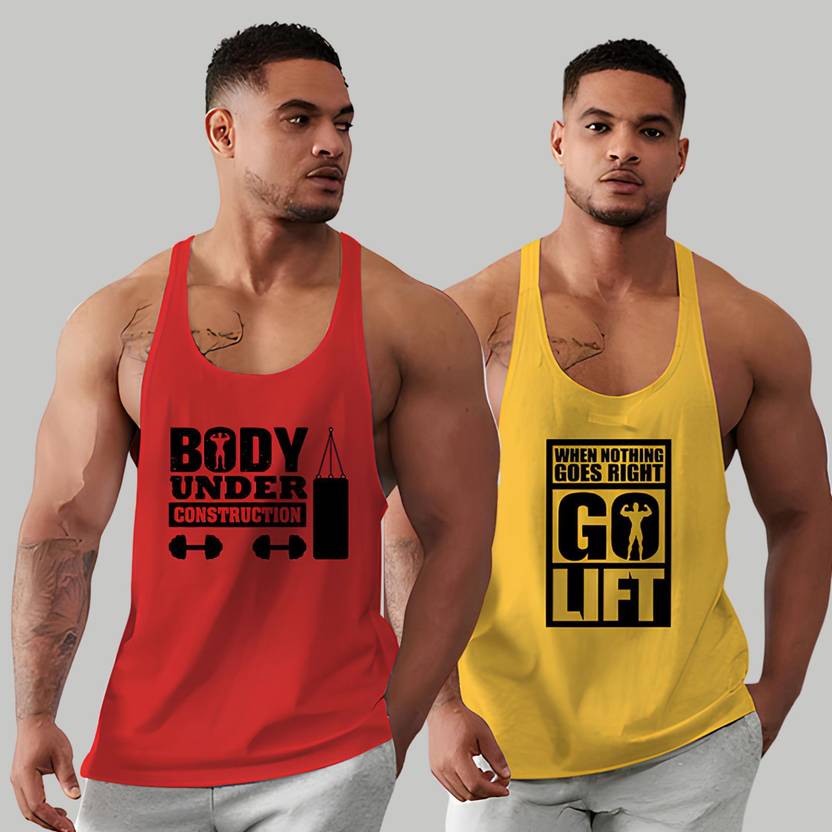 Step into with this stylish and performance-ready pack of 2 men’s polyester gym vests, designed for those who live and breathe fitness. Whether u're lifting heavy at the gym, pushing limits during a CrossFit session, or going for a morning run, these sleeveless muscle are your perfect workout companion. Crafted from premium quality polyester fabric, these vests are built to deliver maximum breathability, sweat absorption, and quick-drying performance – keeping u dry and comfortable throughout your workout. The fabric is soft, durable, and stretchable, giving u of movement without any restriction. Gym Vest for Men Workout Vest for Men Muscle Fit Gym Wear Polyester Gym T-Shirt Sports Vest Men Quick Dry Vest Bodybuilding Vest Printed Gym Vest