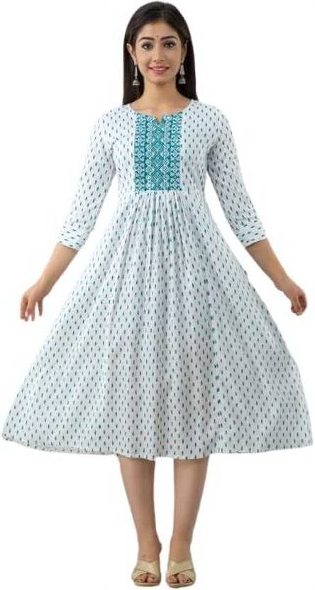 Women Printed Cotton Blend Anarkali Kurta (White)