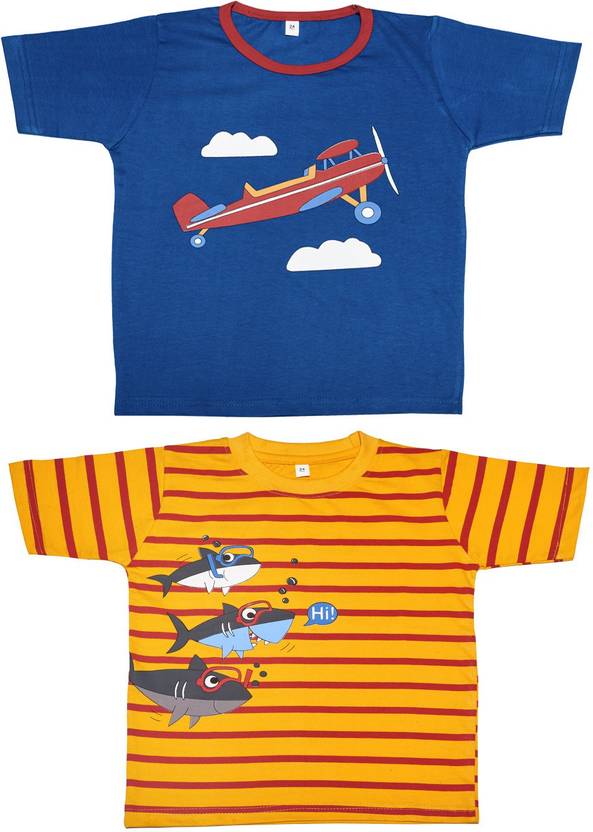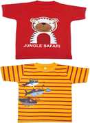 Boys Typography, Printed Pure Cotton Regular T Shirt (Multicolor, Pack of 1)