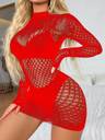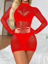 Womens Hollow Out Fishnet Bodycon Dress Mock Neck Long Sleeve Backless Mini Dress.