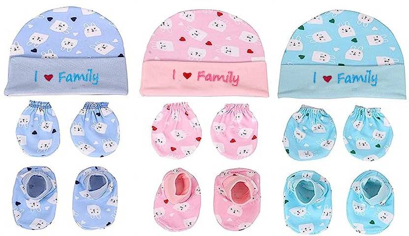 Babking Baby Boys & Baby Girls Casual Cap Mitten, Socks (MULTICOLOR PACK 3)