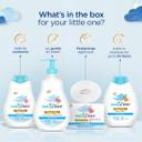 Gift your baby the goodness of Baby Dove. Contains 2 x Bathing bar 50g, 1 x baby lotion 200ml, 1 x baby wash 200ml , 1 x baby shampoo 200ml. Made with 100% skin-natural nutrients. Baby Dove Gently cleanses & nourishes your little one's skin. Baby Dove products are paediatrician tested. Baby Dove products contain NO parabens &phthalates. As a mother, you know that Baby bath and care is precious. But did you know babys delicate skin is 30% thinner than an adult and hence after every bath, baby's skin loses moisture upto 5 times faster than yours and can become dry. Our unique Baby Dove Rich Moisture Range goes beyond mildness, not only mild and gentle but also helps replenish the essential moisture and nutrients of the skin lost through bathing. Its pH neutral formula produces a rich creamy lather, for skin that is clean, effectively moisturised, soft and delicately scented. The product is made with 100% skin-natural nutrients for delicate baby skin (contains nutrients that are 100% identical to those naturally found in skin) Its tear free and hypoallergenic formula is ophthalmologist, dermatologist and pediatrician tested so you can feel safe in the knowledge that your babys skin is getting the extra special care it deserves. Baby Dove Rich Moisture Head to Toe wash formulation is free from added Parabens, Dyes and Pthalates and completely safe to be used on Babys delicate skin and Our Baby Bar with a pH neutral formula and enriched with our moisturising cream, our baby bar keeps your babys skin feeling extra soft and helps prevent the dryness that other ordinary baby soap bars can cause.and use Baby Dove Lotion after bath for the best moisturisation of your babys delicate skin.