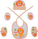 Baby Grow Cap Bib Mittens Booties Set Cute Animal Print (Orange)